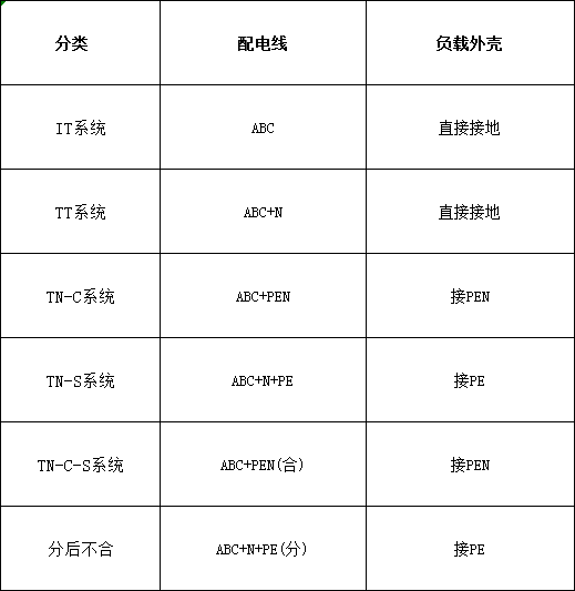 2、T 表示設(shè)備外殼直接接地,它與系統(tǒng)中的其他任何接地點(diǎn)無(wú)直接關(guān)系;N 表示負(fù)載采用接零保護(hù)。