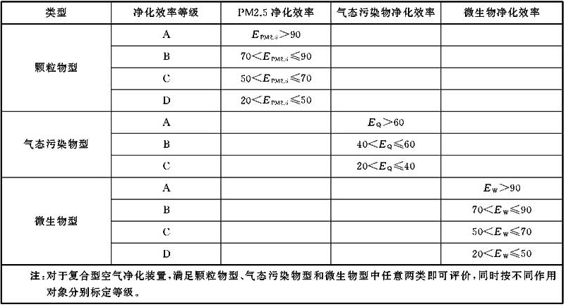 4.1.2.1 按空氣凈化裝置對(duì)顆粒物的凈化效率分類,可分為A級(jí)、B級(jí)、C級(jí)和D級(jí),A級(jí)最高。