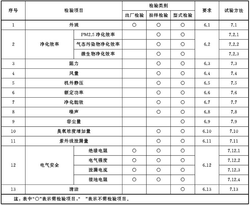 空氣凈化裝置的檢驗(yàn)分為出廠檢驗(yàn)、抽樣檢驗(yàn)和型式檢驗(yàn)。
