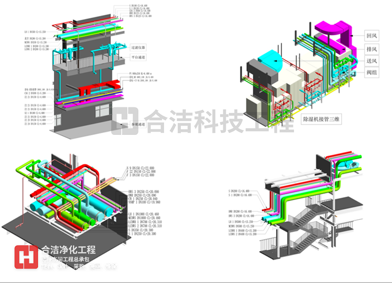BIM 技術(shù)可應(yīng)用于工程項目規(guī)劃、設(shè)計、施工、改建、運(yùn)維等范圍,為產(chǎn)業(yè)鏈貫通、工業(yè)化建造和建筑創(chuàng)作提供技術(shù)保障。合景智慧建設(shè)(廣東)有限公司在潔凈廠房工程建設(shè)中,以BIM技術(shù)為全周期模擬,對工程全局,即潔凈環(huán)境、人流物流、暖通、電氣工程、整廠能耗、質(zhì)量、安全等方面提供方案優(yōu)化和科學(xué)決策提供依據(jù),與各專業(yè)協(xié)同工作、項目的虛擬建造和精細(xì)化管理,為工業(yè)潔凈室建設(shè)提質(zhì)增效、節(jié)能環(huán)保創(chuàng)造條件,虛實(shí)結(jié)合,賦能項目,打造交鑰匙項目。